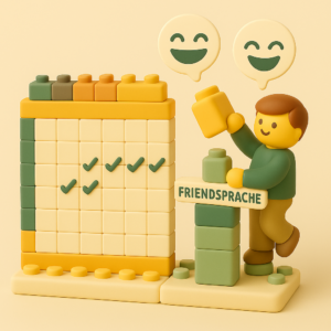En febrero comienza la fase pionera Friendsprache® – un espacio para personas que no solo quieren aprender un idioma, sino vivirlo. En este círculo descubrirás cómo mente, corazón y cuerpo se unen en tu expresión lingüística – con LEGO® Serious Play®, storytelling y tu propio flow.